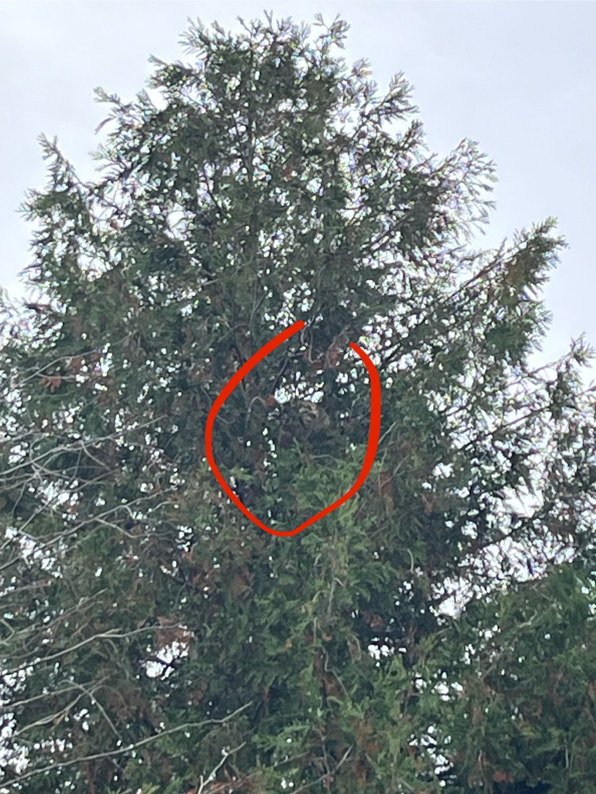 Depuis plusieurs jours, les attaques répétées sur mes ruches laissaient penser qu’un nouveau nid d'une taille d'environ 70 cm se cachait dans les environs. En parcourant le hameau à vélo, j’ai pris le temps d’observer les arbres un à un — et, avec un peu de chance et un œil attentif, j’ai fini par repérer le nid, dissimulé à une quinzaine de mètres de hauteur dans un grand thuya. Bonne nouvelle : le nid de frelons asiatiques a été détruit ce mercredi matin grâce à une intervention rapide et efficace d'un pompier appartenant à l'association Pollinea Action.